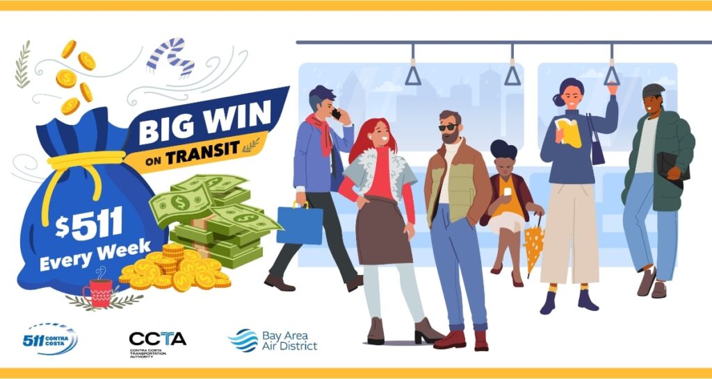 511 Contra Costa is a program of the Contra Costa Transportation Authority. The Big Win on Transit Program is made available with funding from the Contra Costa Transportation Authority and the Bay Area Air District.